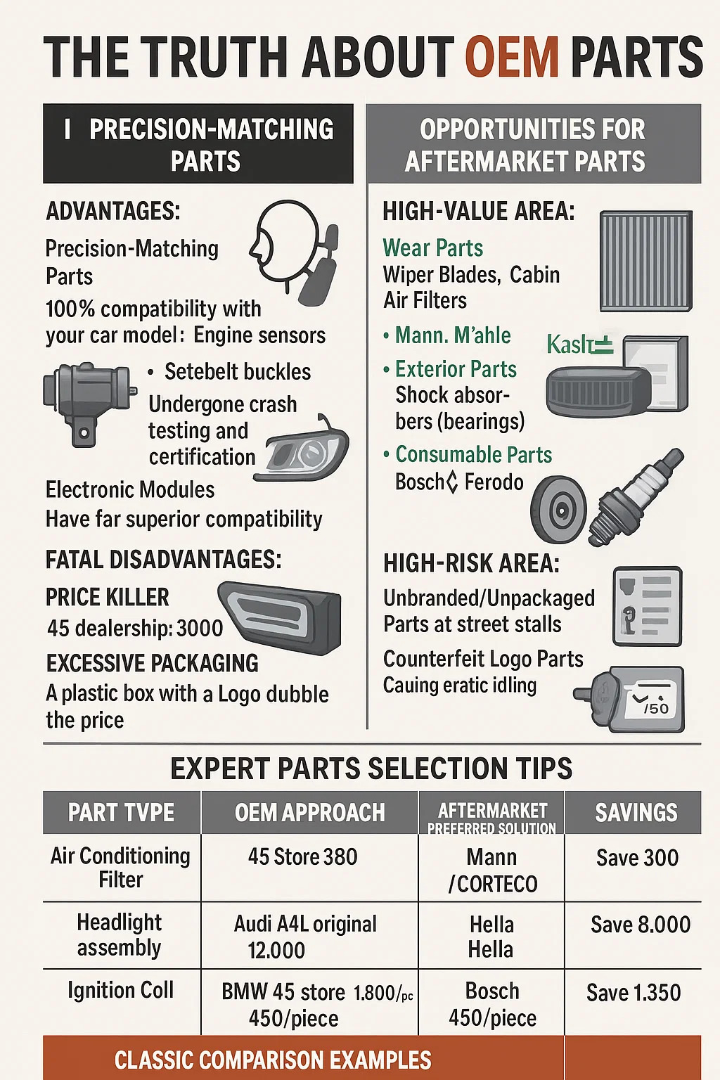 Den här frågan är som att fråga: "Är originaltelefonfodral alltid bättre än sådana från tredje part?" - inte nödvändigtvis. Den bildelar marknaden är komplex och mångfacetterad; det beror på den specifika deltypen och märkets prestige. Här är logiken för att bedöma: