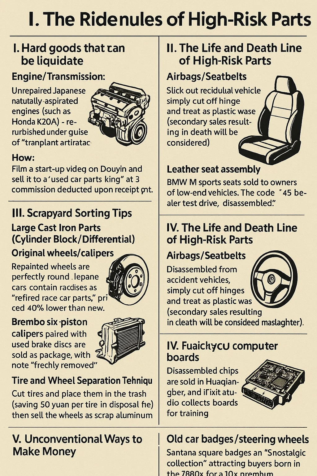 När man hanterar begagnade bildelar , följ de tre järnklädda reglerna för "Sälj vad du kan, kassera vad du ska och undvika det gråa området."